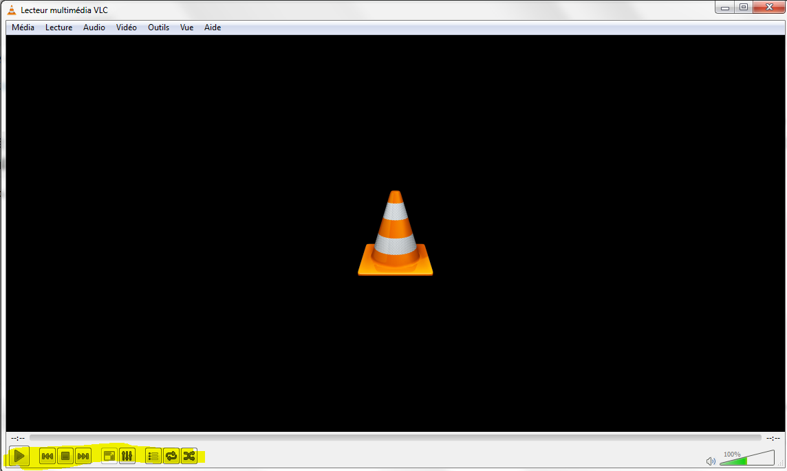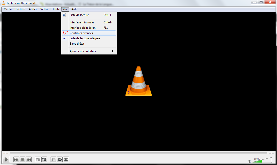 1. Ouvrir VLC; par défaut VLC s’ouvre avec la barre de lecture uniquement: