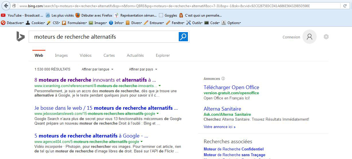 Alors, j’ai cherché “moteurs de recherche alternatifs” sur Bing pour ne pas faire capoter le défi.