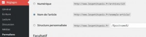 J’ai paramétré mon wordpress pour que les permaliens reprennent le titre de mes articles (cf réglages > permaliens dans le backoffice).