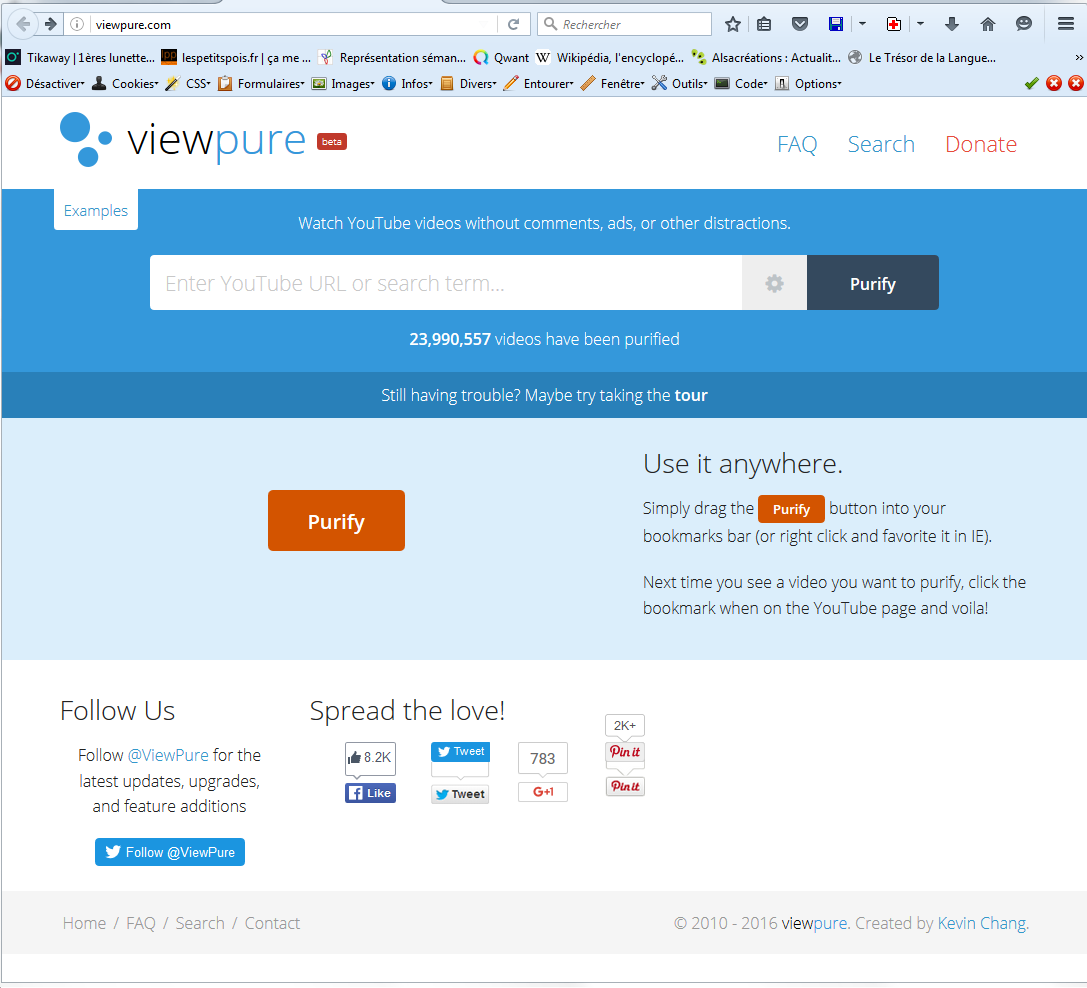 Aujourd’hui, je vous propose de “purifier” les vidéos de Youtube grâce aux services de viewpure.com.
