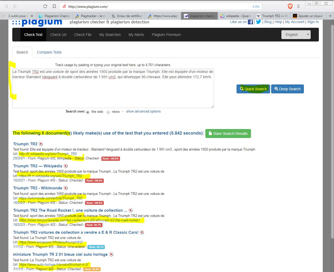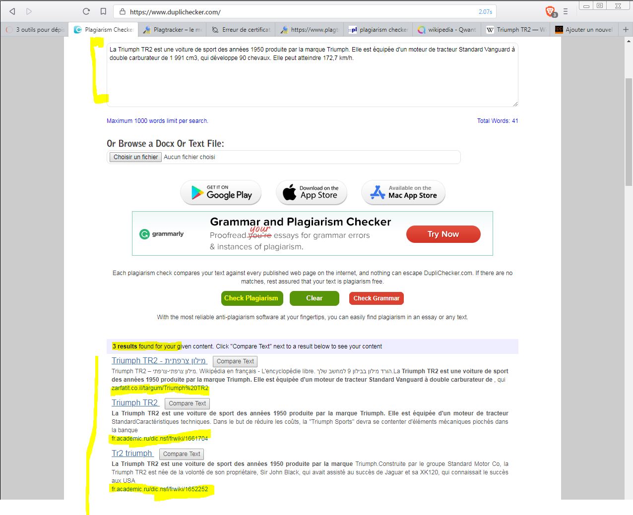 Et j’ai copié/collé les 2 premières phrases dans chacun des outils mentionnés dans l’article :