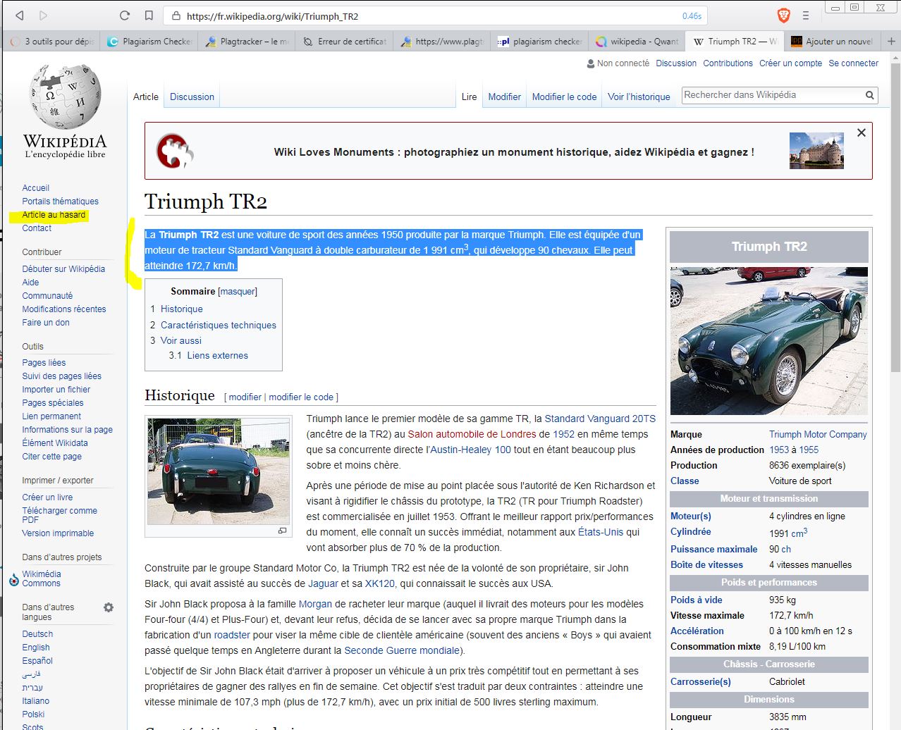 Pour faire le test, j’ai pris une page au hasard dans le Wikipedia: https://fr.wikipedia.org/wiki/Triumph_TR2