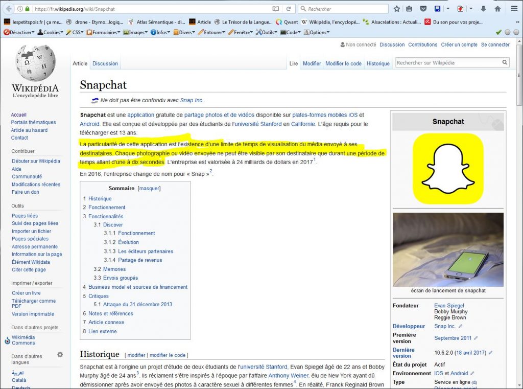 Et son concept de base, c’est la photo ou la vidéo éphémère: les utilisateurs s’échangent des photos ou vidéos et ces dernières ne sont visibles que quelques secondes (https://fr.wikipedia.org/wiki/Snapchat)