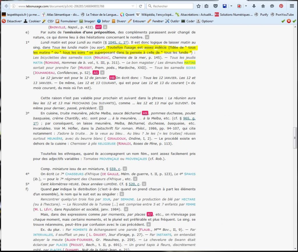 Grev. indiquant l’ouvrage “Le bon Usage” de Maurice Grevisse, grammairien belge mais médaillé d’or de l’Académie française.