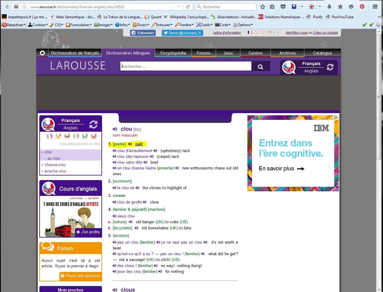 Là où j’ai sursauté, c’est sûr la traduction anglaise. En tant que personne du sexe féminin, je connais le mot “nail” comme se traduisant par “ongle”. Mais clou ?
