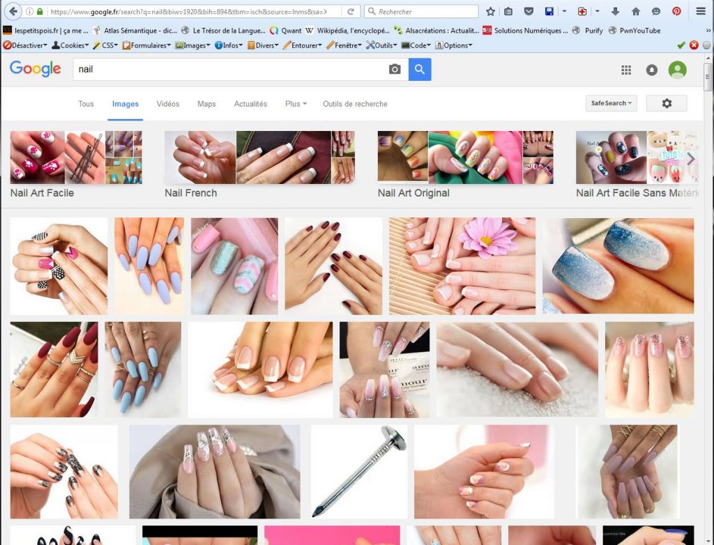 Il faut dire que dans leurs pages d’image sur la requête “nail”, Qwant et Google exprime plutôt leur côté féminin…: