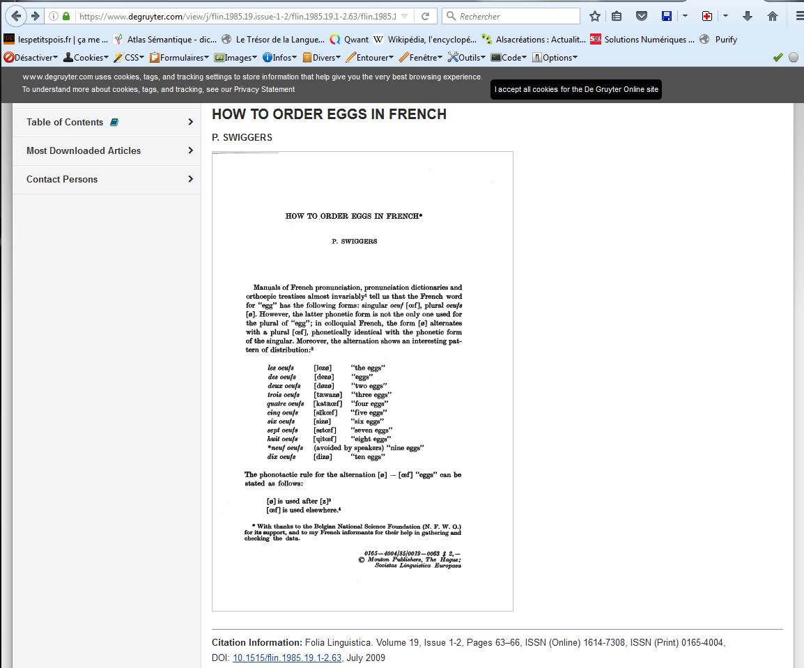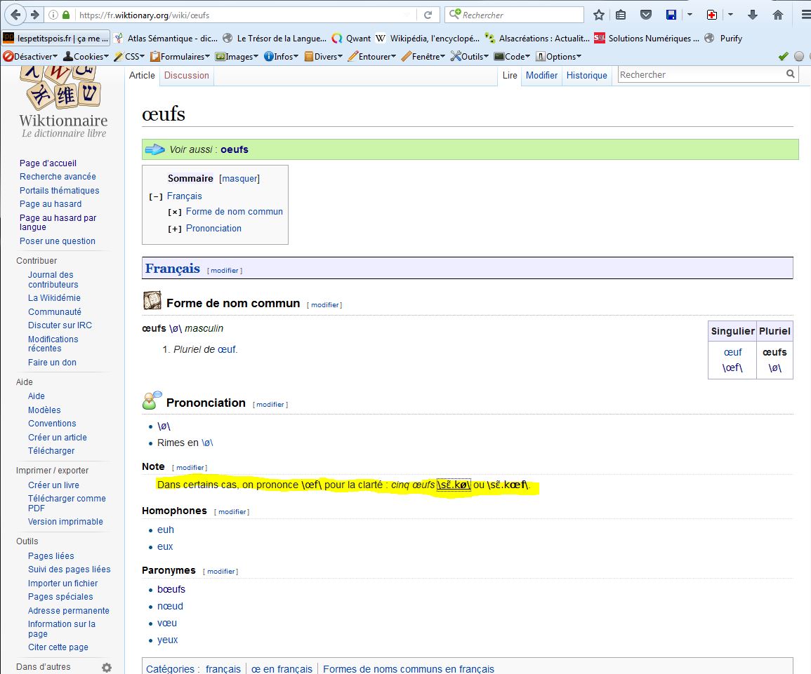 Ainsi, on trouvera sur le Wikitionnaire à l’article “Œufs”la phrase suivante: