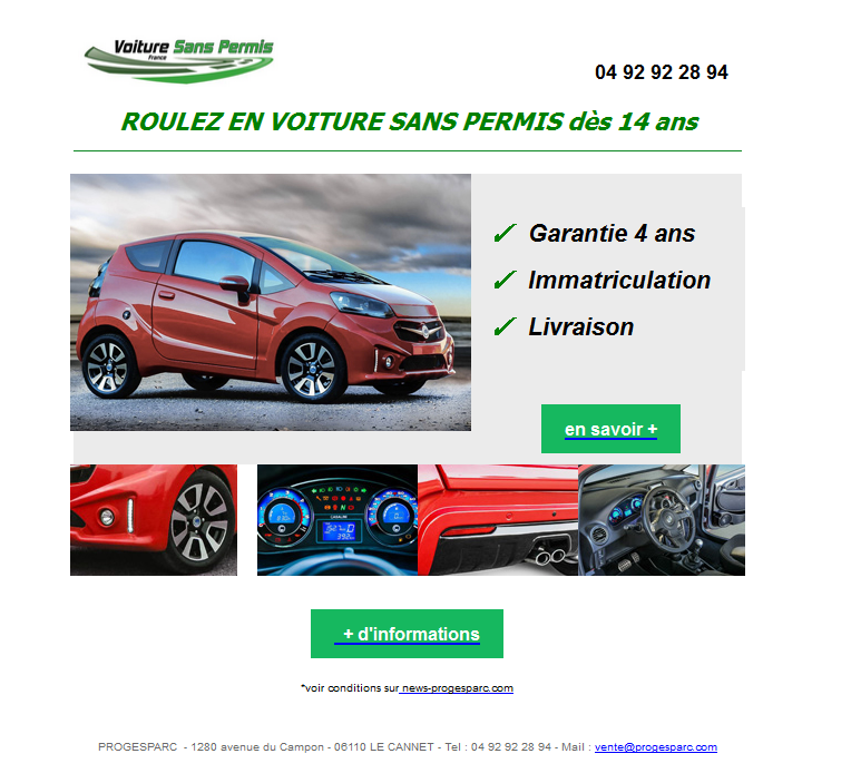 Ainsi, grâce au spam ci-dessous, j’ai appris que sur la route, sous de jolies carrosseries (mais qui ne roulent pas très vite…) il peut y avoir des conducteurs âgés de seulement 14 ans !