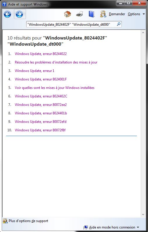 Parce que, effectivement, en cliquant sur “Obtenir de l’aide sur cette erreur”, le centre d’aide et support Windows propose n’importe quoi sauf cette erreur…