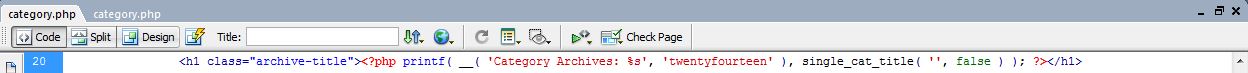 echo '<h1 class="archive-title facat' .$parentscategoryclass.'">';printf( __( '%s', 'twentyfourteen' ), single_cat_title( '', false ) );echo '</h1>';