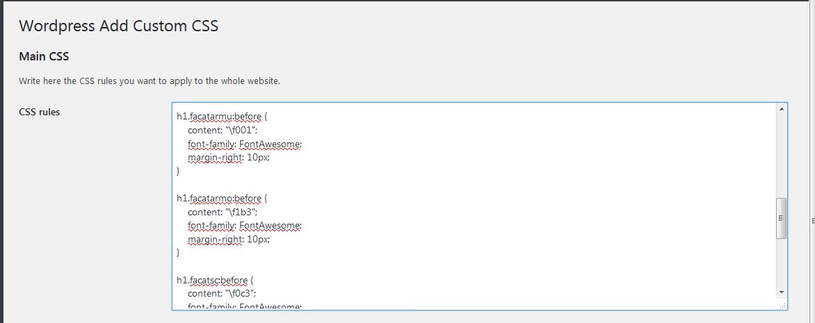 Il faut, pour pouvoir l’utiliser, que  WordPress puisse “reconnaître le langage” de fontawesome, c’est-à-dire que le WordPress appelle le fichier css de fontawesome.