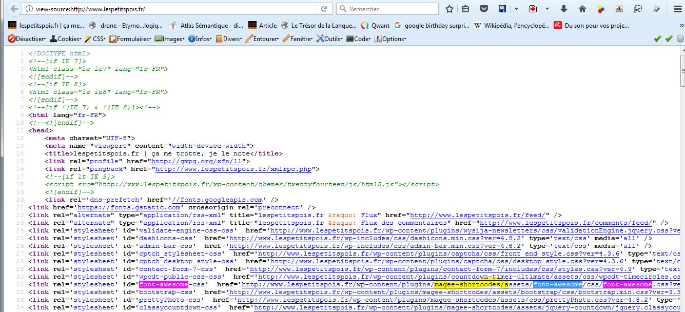 Regarde dans ton code source si tu vois un appel vers un fichier css qui mentionne fontawesome.