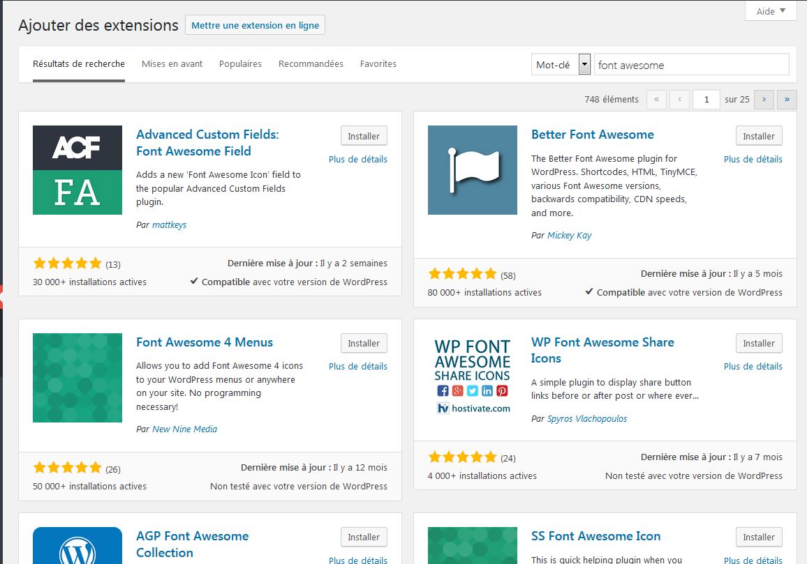 Et puis, si tu t’y connais en programmation et en WordPress, tu peux tout aussi bien faire appel à se fichier toi-même: http://fontawesome.io/get-started/