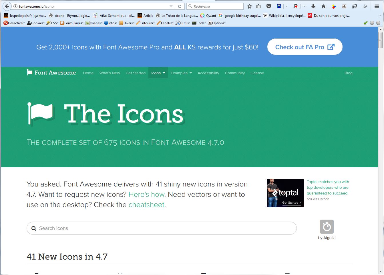 Fontawesome, c’est un site qui propose une grande liste d’icônes atteignables via css: