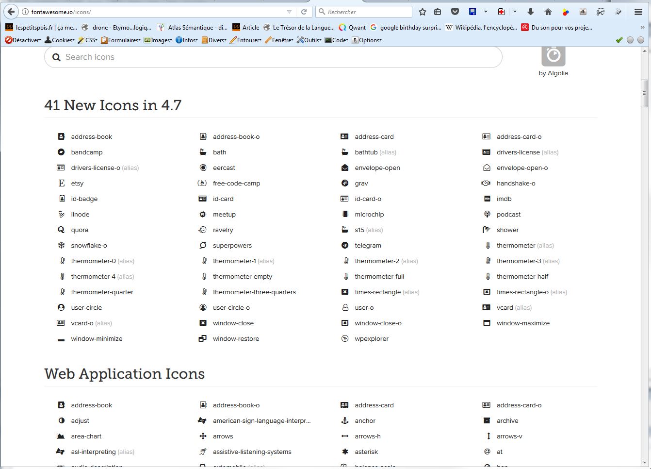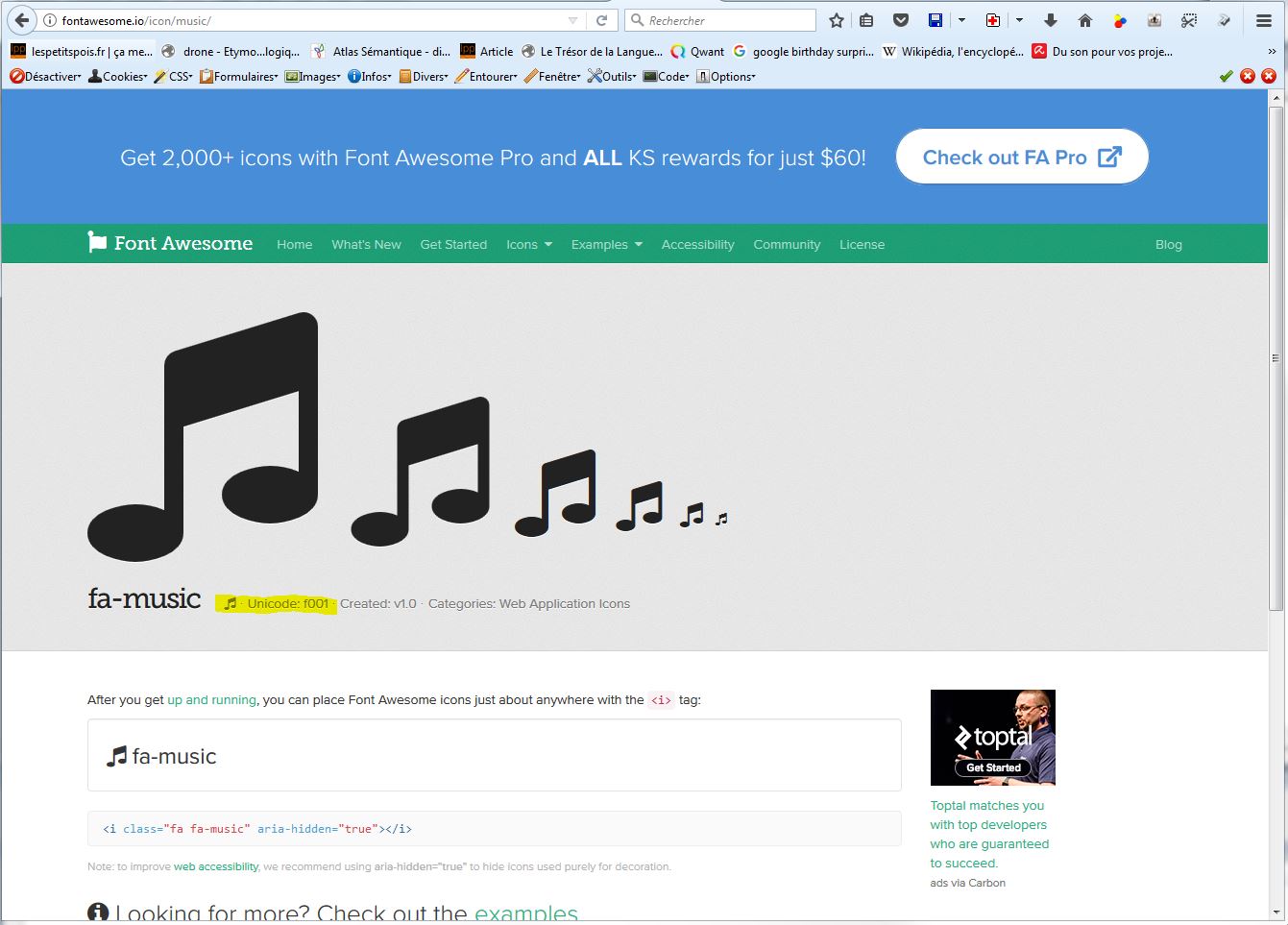 La seule chose que je te demande, c’est de te noter les codes unicode de chacune des icônes (en jaunes ci-dessous):