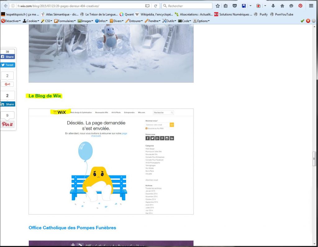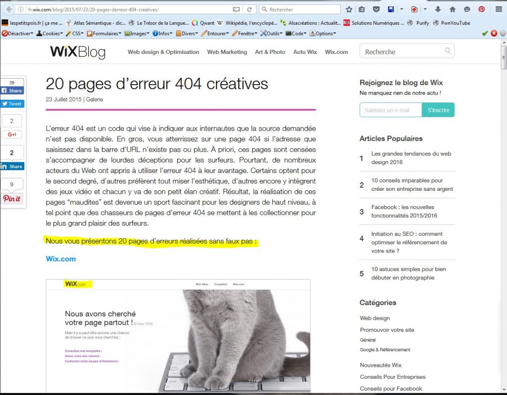 Ils ont bien fait de faire un article sur les pages 404 chez Wix… C’est encore un coup de la trop gentille stagiaire ça (le reste de l’équipe devait être en vacances; l’article datant du 23 Juillet 2015…).