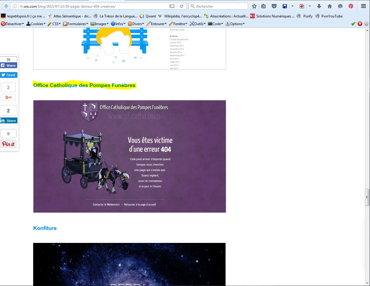 Voilà donc qu’en faisant ma promenade du soir sur le web, je tombe sur un article du blog de Wix intitulé 20 pages d’erreur 404 créatives.